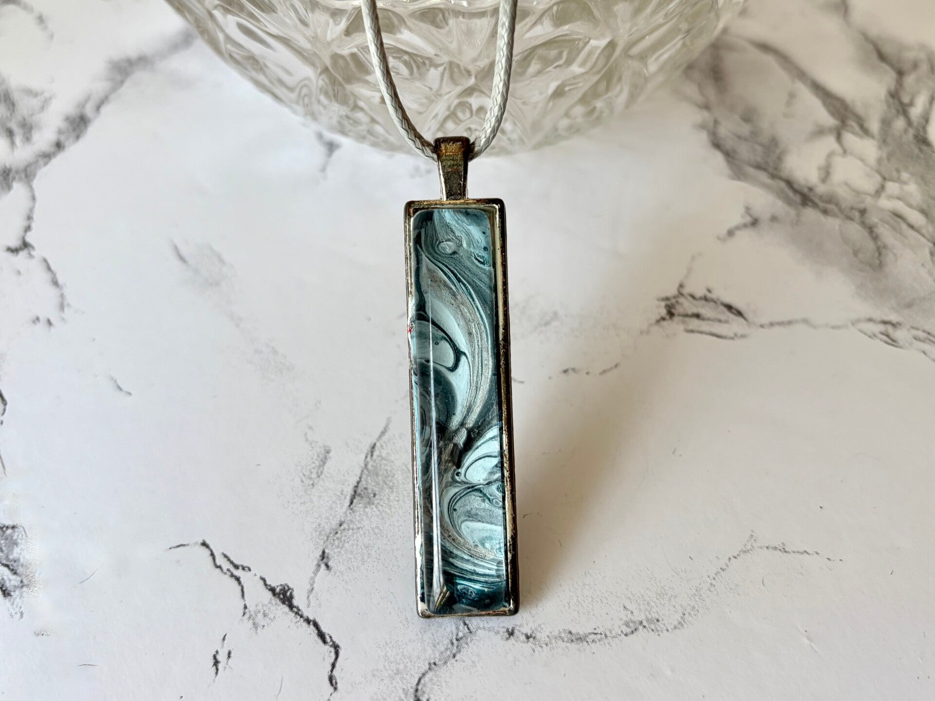 This piece is from a paint pour done in blues & black.