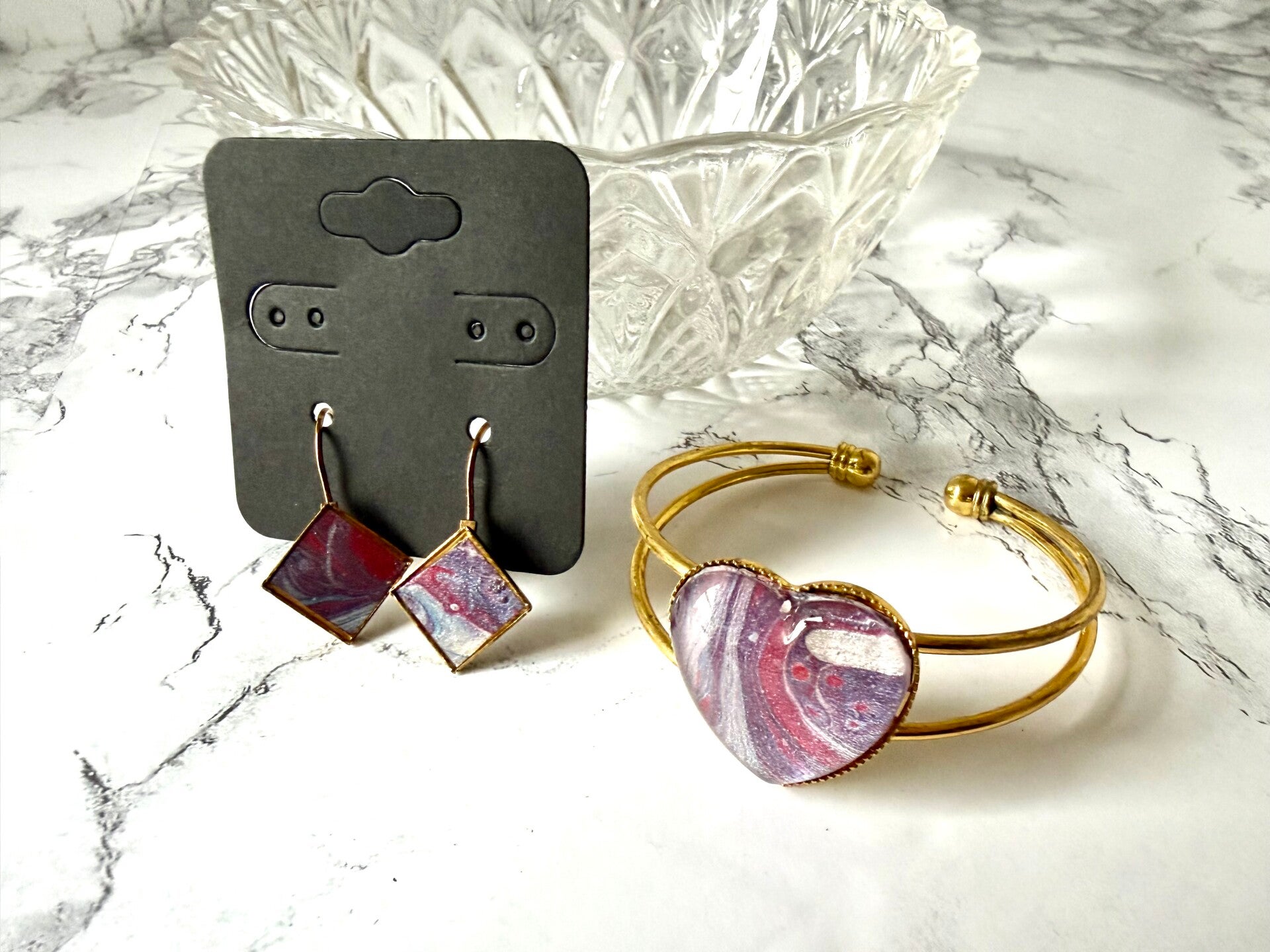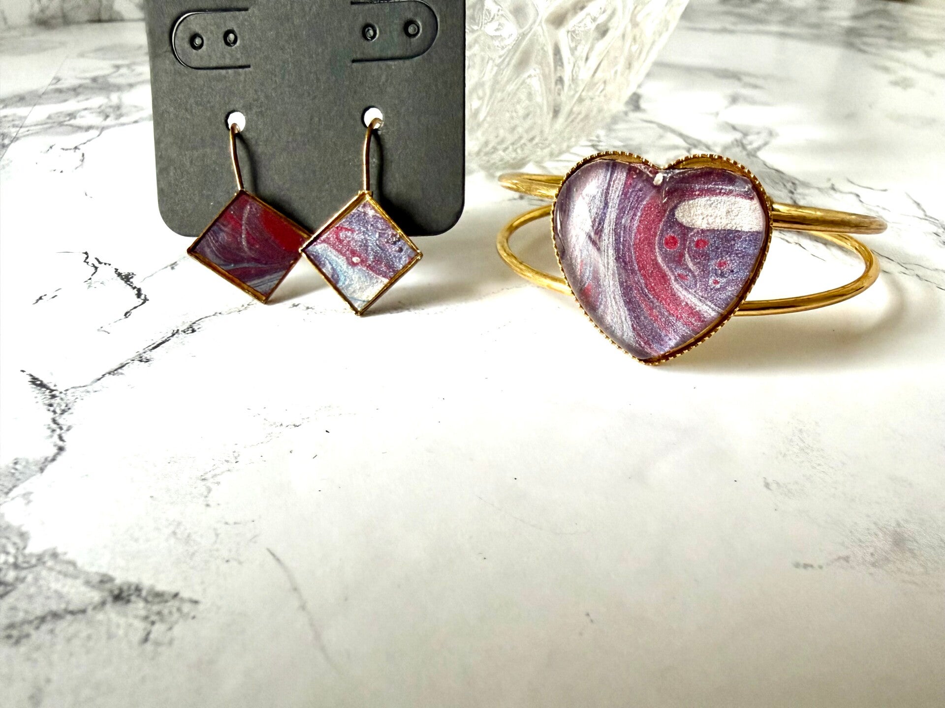 This set is from a paint pour done in red, white, and blue.